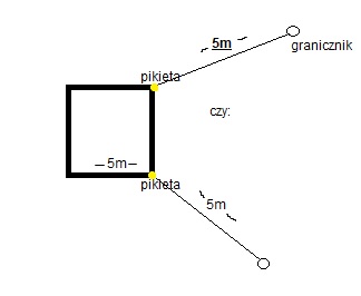 Jeżeli budynek został pomierzony z dokładnością 10cm t o może być też to drugie. (czołówka od rogu budynku istniejącego do pomierzonego)