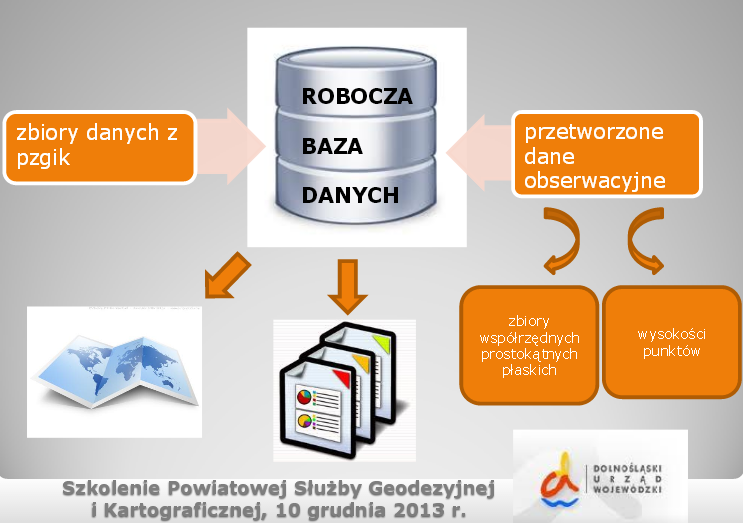 - utworzenie, na podstawie zbiorów danych pozyskanych przez wykonawcę z PZGiK oraz z przetworzonych danych obserwacyjnych, o których mowa w pkt 1, roboczej bazy danych obiektów przestrzennych;